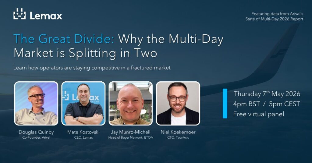 On 7th May, Lemax is hosting a free virtual panel, ‘The Great Divide: Why the Multi-Day Market Is Splitting in Two’ with speakers from Arival, ETOA and TourAxis. The panel will explore the findings discussed in this article in depth, with frank discussion from operators and industry leaders who are living this transformation firsthand.