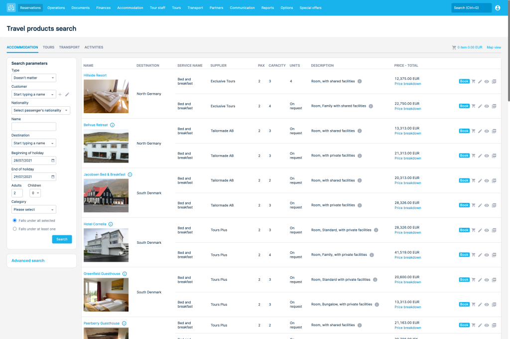 B2B online booking by definition allows partners/travel agents to book items from the system that you, as a tour operator, use. It enables partners to have an overview of all the products and documents, and make reservations directly from there. Moreover, a partner can enter customers’ transactions and follow them together with the reservations.